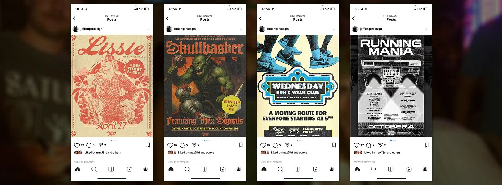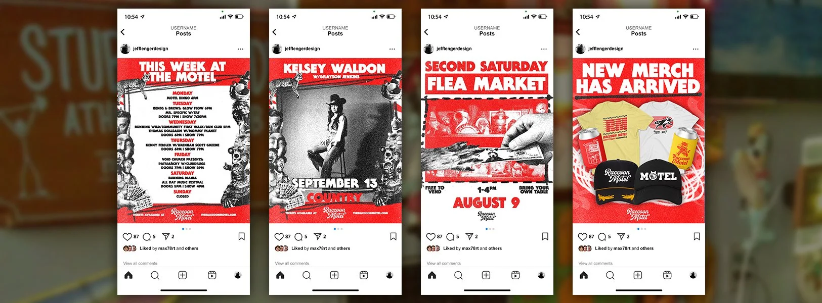 The Raccoon Motel relies on consistent, engaging design to promote events, strengthen brand identity, and connect with the local community.